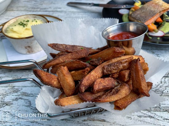 I did enjoy the modern farmhouse décor style that the main dining area uses. For the outdoor patio seating, they also have a nice setup that helps to block out the road noise from the highway right next to the restaurant.