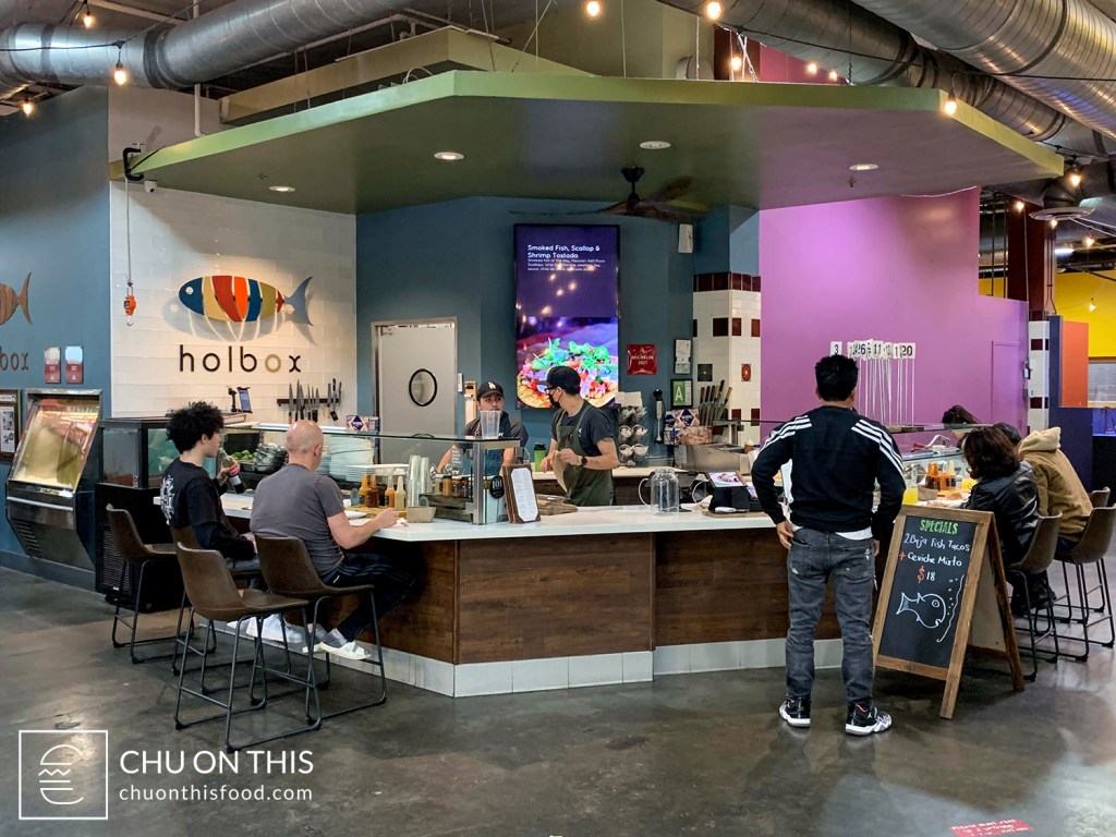 Last month, my friend Michele and I were planning a trip down to the California Science Center one weekend. We didn’t have anything set for lunch, and she suggested that we check out a seafood taco place nearby called Holbox, located inside a marketplace called Mercado La Paloma that housed a number of shops and restaurants. There are quite a few different food options inside this warehouse space, but Holbox was the only one that focused primarily on seafood.
