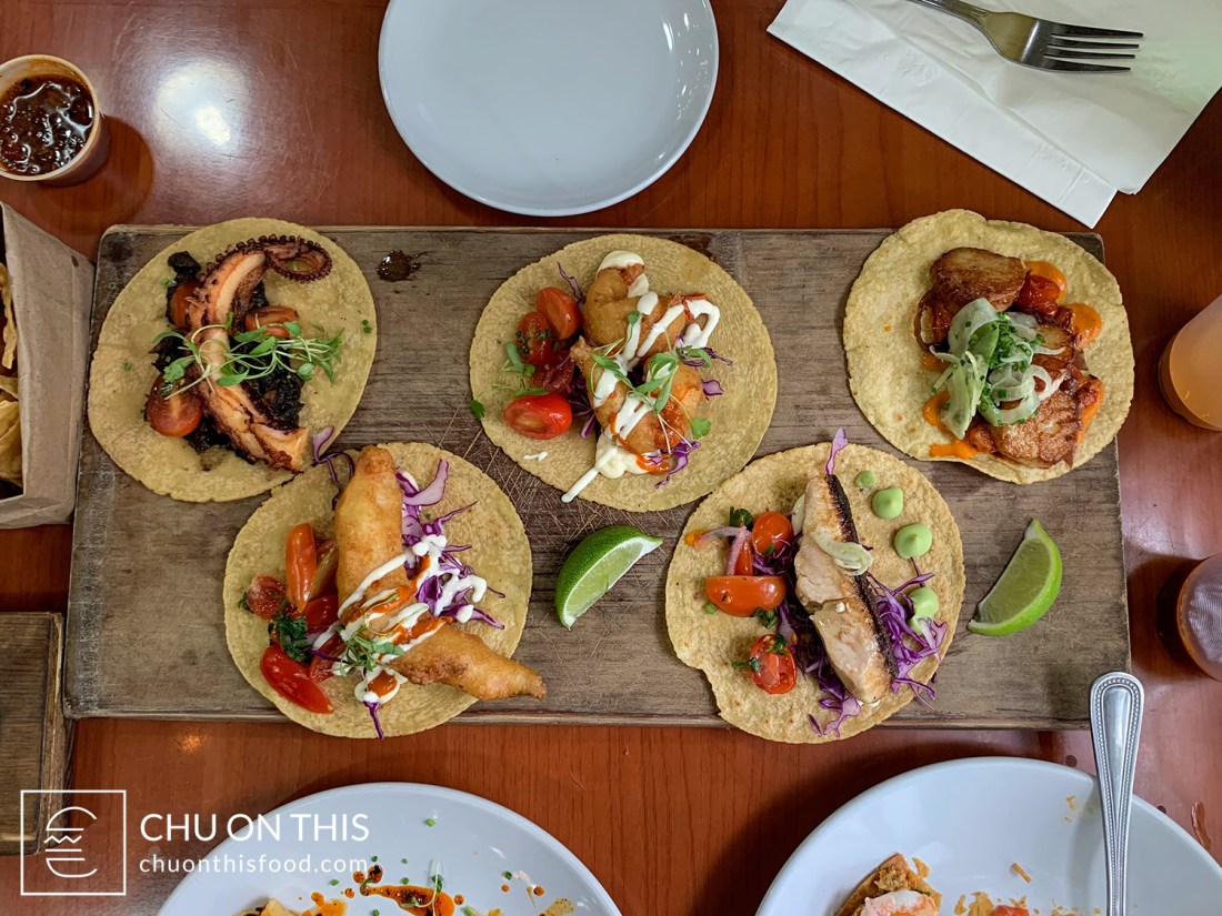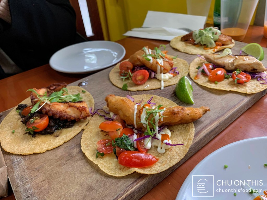 - Baja Fish Taco — you can’t go wrong with a classic. This featured crispy battered rockfish, served over some red cabbage, cherry tomatoes, crema, mayo, and salsa roja. The ratio of batter to fish was really good, and the size of fish was just right for that singular taco.