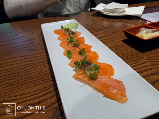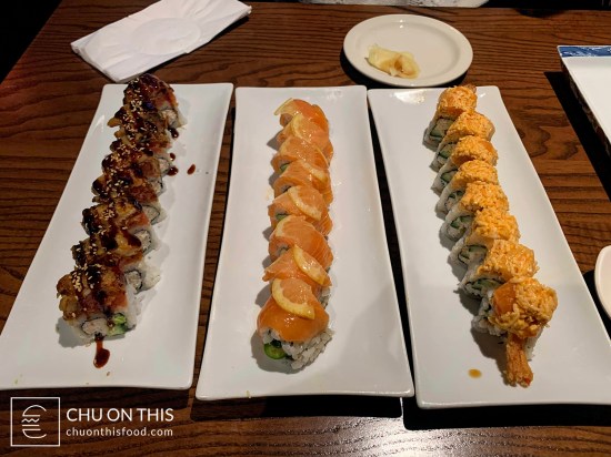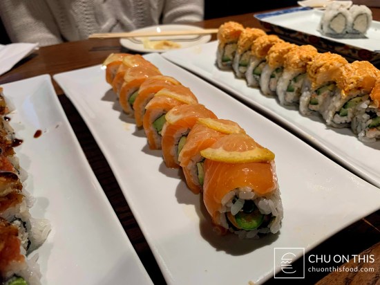 In the end, we decided to get three different rolls (Alamo, Hunt, and Sunset), along with their Yuzu Salmon cold signature plate. It was a Sunday night, and while there were still a good number of tables occupied at the restaurant, the overall atmosphere still felt more quiet at the same time. It didn’t feel like we ended up waiting too long for our food, as our Yuzu Salmon plate was the first to arrive over. It didn’t take us very long to polish off that plate before the sushi rolls began to trickle in from the sushi chefs.