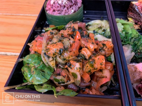 For all of their different poke options, it looks like those portions are made-to-order, instead of them already coming pre-mixed and scooping it onto your plate. When I tried the Hawaiian before I ordered it, it definitely had a subtle sweetness to it, which was contrasted by the sharpness of the raw white onions mixed in as well. Since it seemed like we were one of the few orders that they were working on, it didn’t take them very long to put together our combo plates and bring them out to us.
