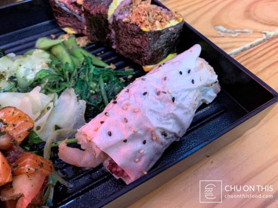 Presentation-wise, it definitely has that bento box feel to it, with all of the different components divided up within the box container. In addition to the poke, handroll, and musubi, the combo plate also contained a portion of their purple rice, some edamame, along with a half-and-half portion of the cucumber and seaweed salad. For $32, it was definitely jam-packed with a lot of food for sure.