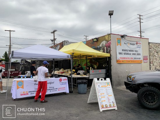 It was definitely quite a setup that they had going on for this whole operation. I counted four flat-top grills constantly populated with either meats, eggs, hashbrowns, or vegetables, along with quite a few long folding tables for food prep or assembly. Seems like these guys have been around for quite a while, with plenty of customers rolling through during the time I was waiting for my food, along with one of their banners saying they were featured in a “Best Of” in the LA Times back in 2021.