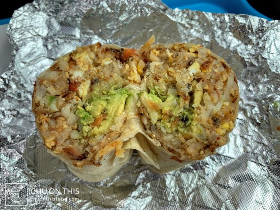 This burrito was definitely a hefty amount of food, there was no question about that. It was nice that the burrito was cut in half to make it easier to enjoy in more manageable portions as well. The cross-section view showed an array of the potatoes, eggs, and avocado, but it was a bit harder to discern the tomatoes and spiced beef. When I took a bite out of the burrito, the ingredients I was able to taste matched what I was seeing visually. The flavors were predominantly potatoes, then followed up with the avocado. Eggs were next, but I don’t really remember getting much of the Armenian spiced beef at all.
