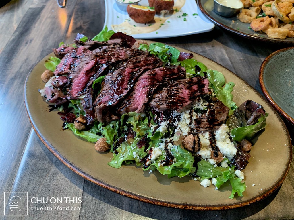 That steak salad though, when it was first dropped off at the table, that was definitely quite the sight. Mixed greens tossed in a balsamic vinaigrette, topped with dried cranberries, candied hazelnuts, and grilled beef tenderloin. It typically came with smoked blue cheese, but I substituted it out for feta cheese instead. A balsamic glaze drizzle over the plate completed what still looked to be a pretty hefty plate of food as well. The steak was grilled to the medium-rare that I requested, and the mix of savory, sweet, tangy, acidic, and umami flavors really helped to make the salad shine as a whole. I did get my greens in, but the steak hit the spot at the same time as well.