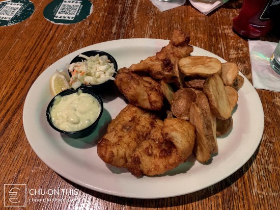 The menu features a number of different food options, from burgers to sandwiches to salads. There are also a number of Irish entrées as well, including shepherd’s pie, bangers & mash, and Irish stew. Of the Irish pubs that I’ve been to, I’ve typically been one to lean towards fish & chips, and this time was no different. The shepherd’s pie and Guinness burger had also sounded pretty good as well, and I think that if my appetite had been larger, I might have considered those instead of the fish & chips.