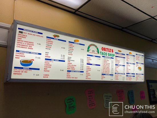 Let’s now take a look at the Ortiz’s Taco Shop Dish Spotlight. Asterisks (*) below mark my recommended dishes.