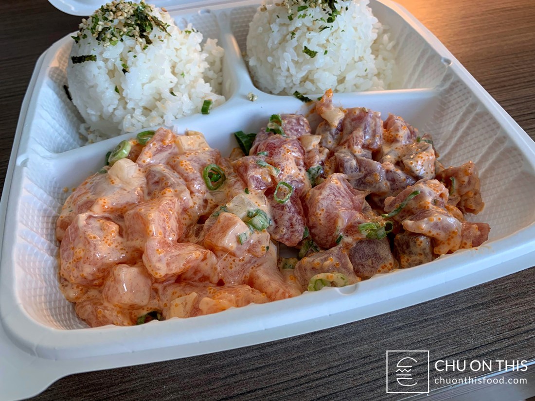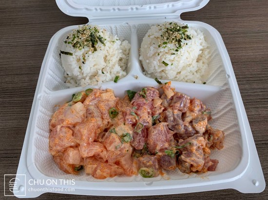 ** Poke Combo Plate, with Spicy Salmon and Spicy Ahi **