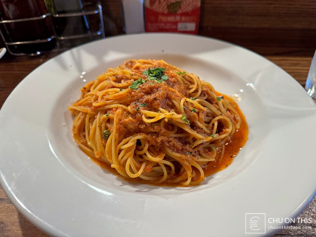It was then time to try out one of their signature pasta dishes: the beef ragu spaghetti. There was definitely a reason that this was annotated as one of their signature dishes on the menu, with its rich, deep flavors that just worked so well together. The ragu used San Marzano tomatoes for that umami-packed punch, with beef that was slow-cooked in the sauce to where you could use a fork to pull it apart. Pieces of zucchini complemented the beef in the ragu, with a generous amount of grated Parmesan cheese on top, finished off with a garnish of parsley. There was just the right amount of sauce to balance with the spaghetti noodles, vegetables, and beef. Once again, even with the rich flavors, I found myself surprised at how it didn’t feel too filling.