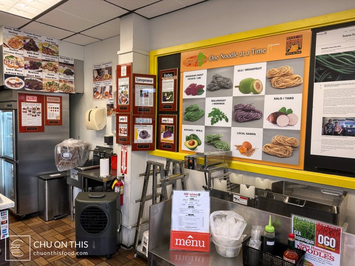 The calling card for Adela’s is the various types of noodles that they make in-house with produce sourced from local farms in Hawaii. Pasta made from Okinawan sweet potato / ube, breadfruit, taro, avocado, or moringa leaves are on the menu, along with angel hair capellini. You construct your own pasta dish by choosing the types of pasta and sauce, along with any other toppings you’d like to include. When looking at the menu the first time, it was a lot of information to take in to try and make a decision, since everything sounded good. I’d definitely recommend taking a look ahead of time, if you can.
