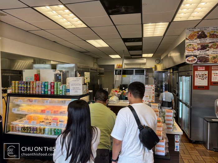 Located in a very unassuming small shopping plaza, this restaurant is set up as takeout only, with a line of people pretty consistently out the door waiting to order. I think we ended up being lucky that the line was only maybe 10 people ahead of us, since I’ve seen photos where it might have been double that or more. Be prepared to wait for your food, however, since we were quoted about a half hour for our food to be ready after we ordered.