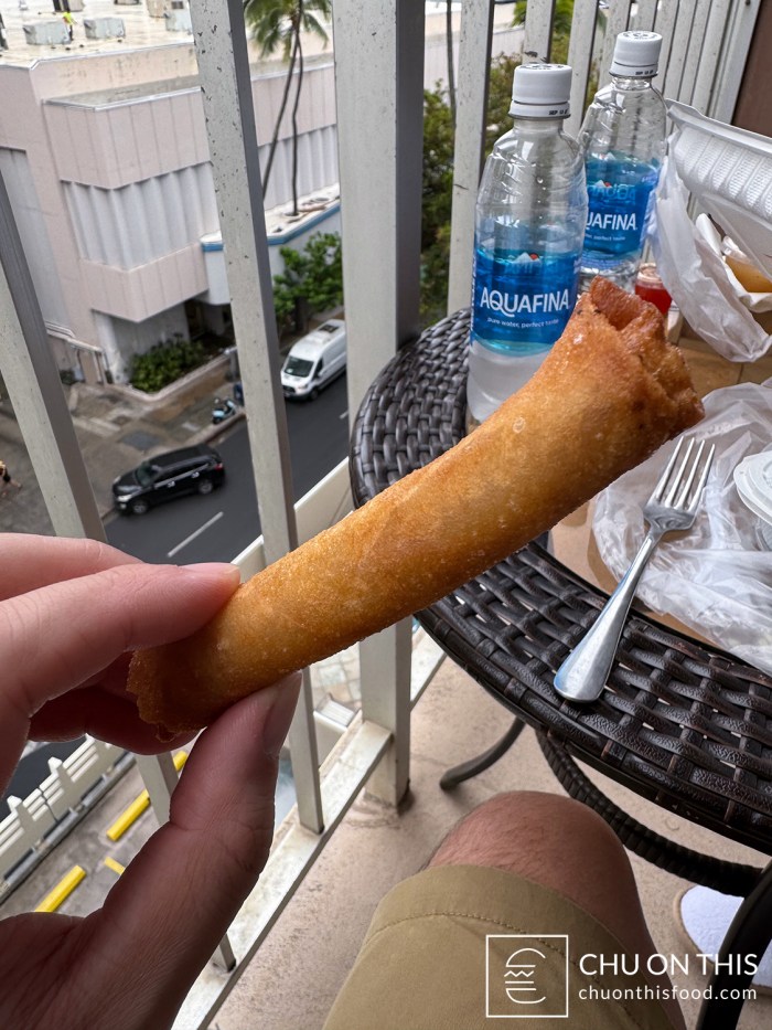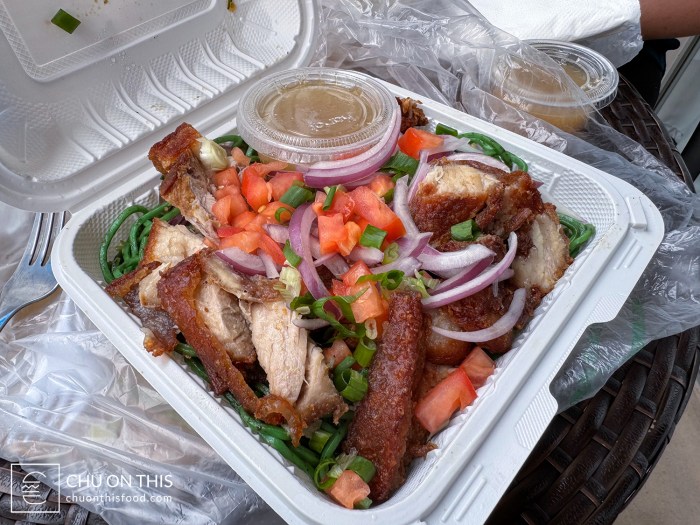I tell you what, we massively underestimated just how much food comes with each order of pasta. After our 30 minute wait, we opened up each box of noodles to find that they had probably 1.5 to 2 pounds of food. In addition to the sizeable portion of pasta, there were hefty pieces of the crispy lechon as well. We drove the food back to our Airbnb to eat, since we didn’t want to make a mess attempting inside the car. (The 30-minute drive while smelling the food and being pretty hungry was definitely rough to wait.)